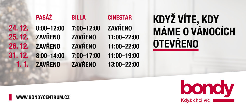 Když nevíte čím obdarovat své blízké, tak je jasnou volbou Bondy dárkový šek! Prodáme Vám ho každý všední den od 9:00 do 16:00 na Správě Bondy Centra.
