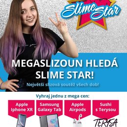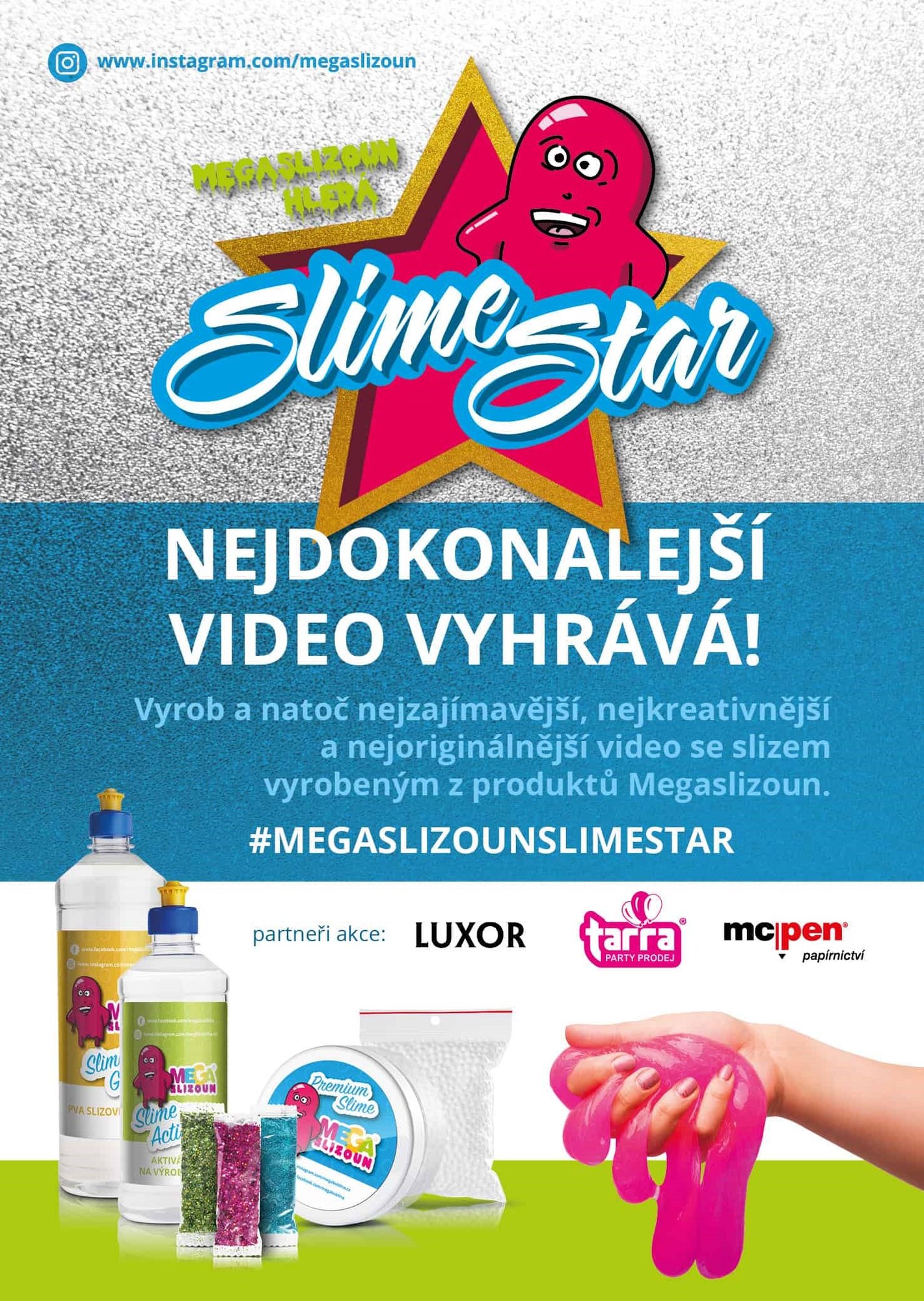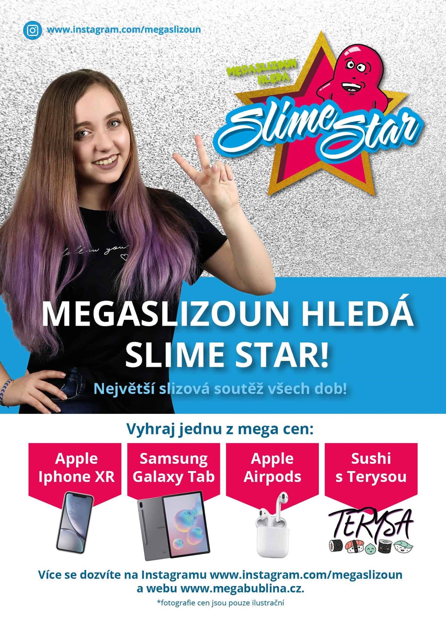 - vyhlášení soutěže Magaslizoun hledá Slime Star, kde se soutěží o super ceny včetně Apple Iphone, více o soutěži zde: https://www.megabublina.cz/megaslizoun-hleda-slime-star/?