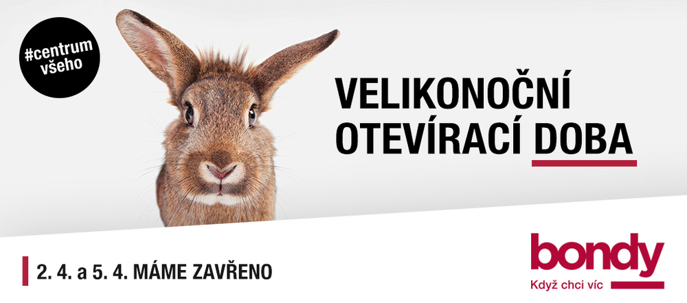 Milí zákazníci, na Velký pátek 2.4. a Velikonoční pondělí 5.4. je Bondy Centrum uzavřeno.